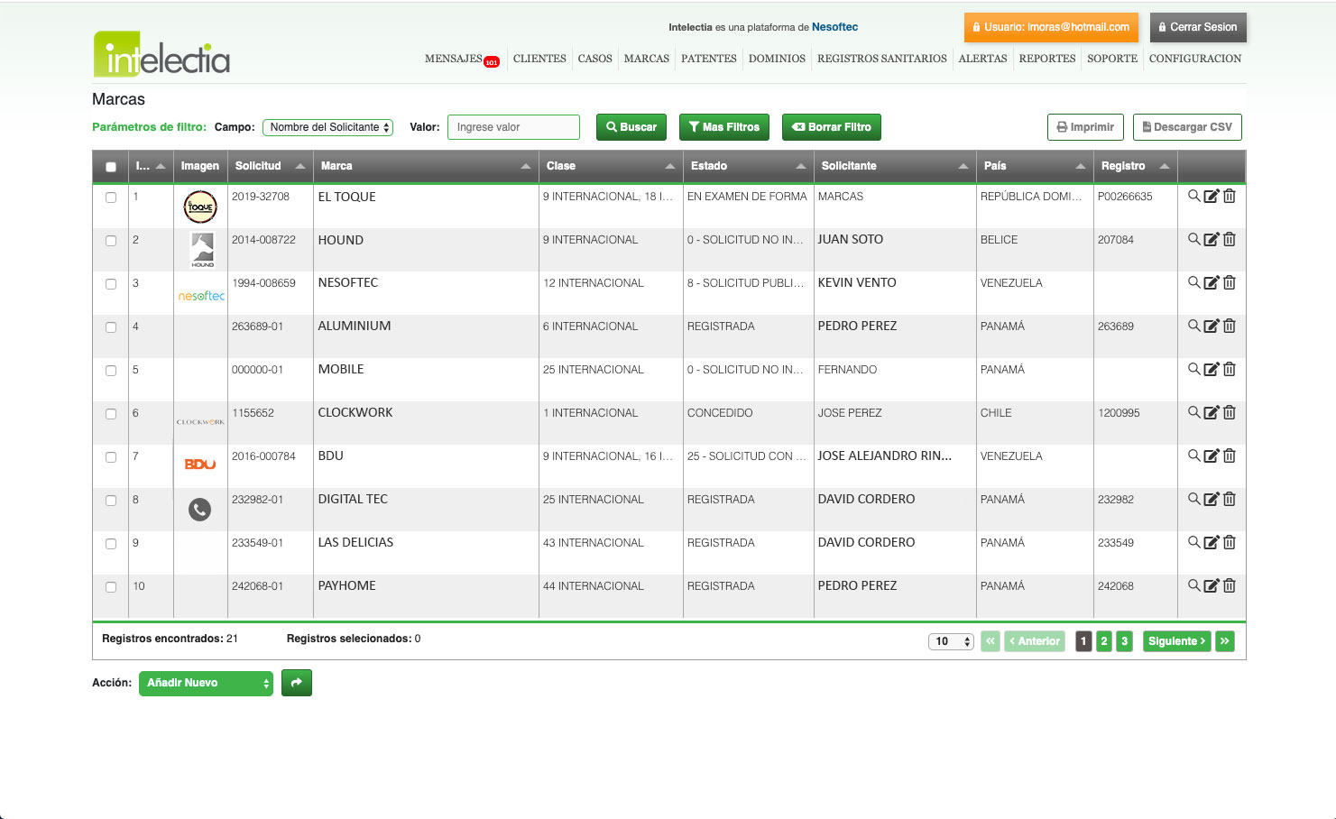 Intelectia le permitirá llevar el control durante el proceso de registro de sus marcas y gestionar toda la información relacionada, en cualquier país y conectado en línea con diversas oficinas de registro.