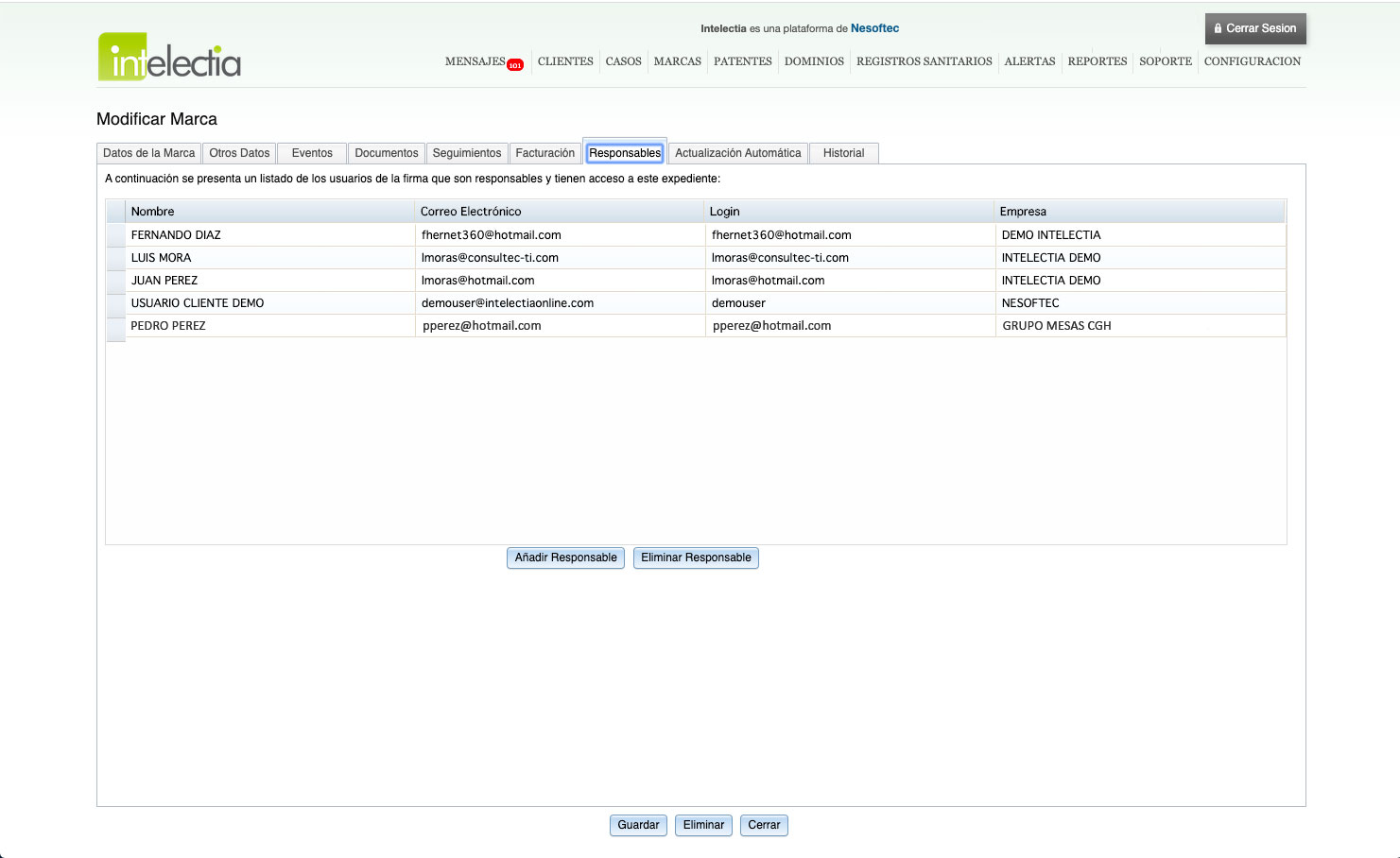 Un repositorio centralizado para consultar las marcas o procesos de registro de todos sus clientes.